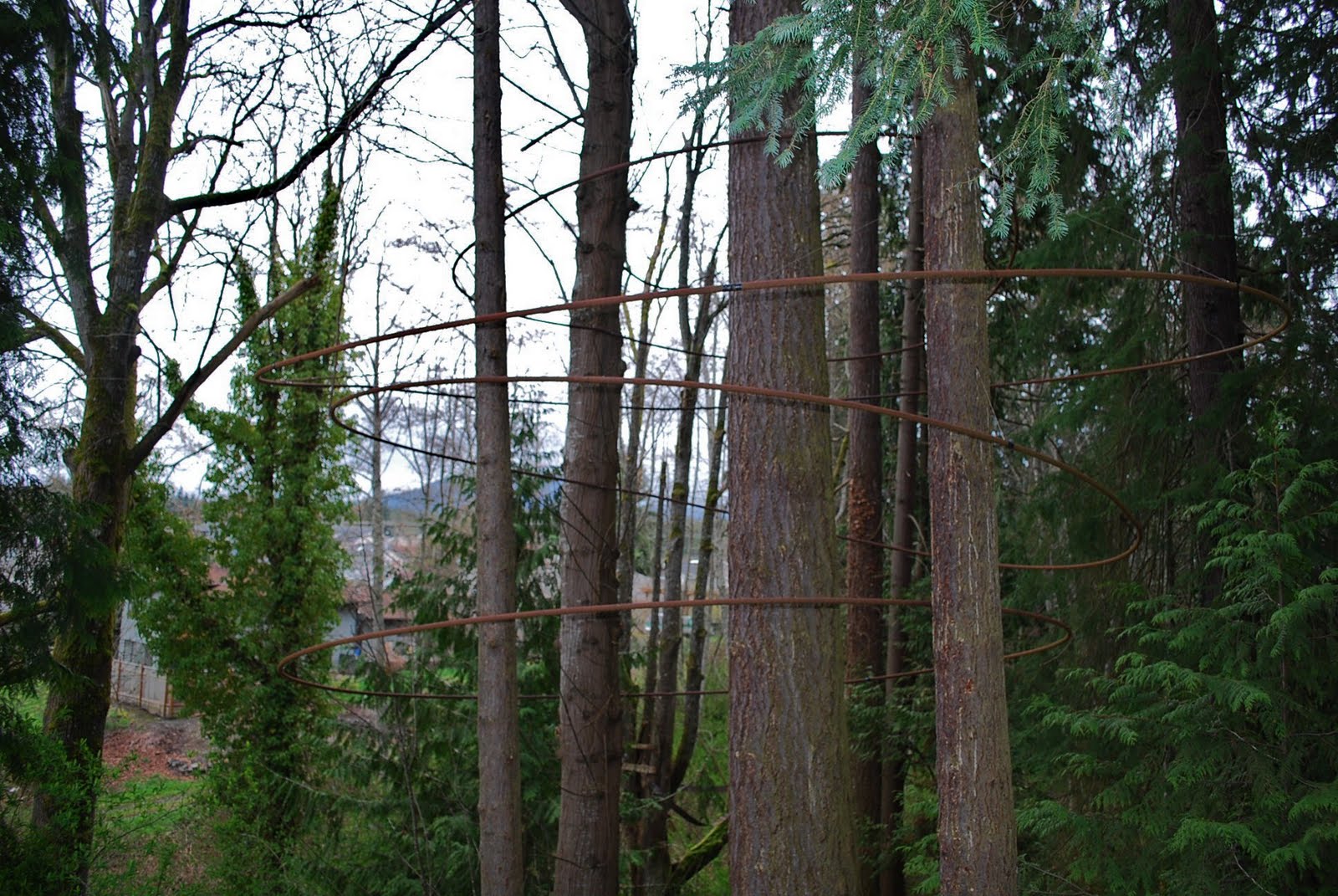 Processing Further: What a lovely, rhythmic creation! The rust coloring is totally unobtrusive and blends in with the subtle shades of the surrounding woods. I am calmed by the effect and reminded of repetitions in the universe: orbits, flights, glides...so much stated without one word.